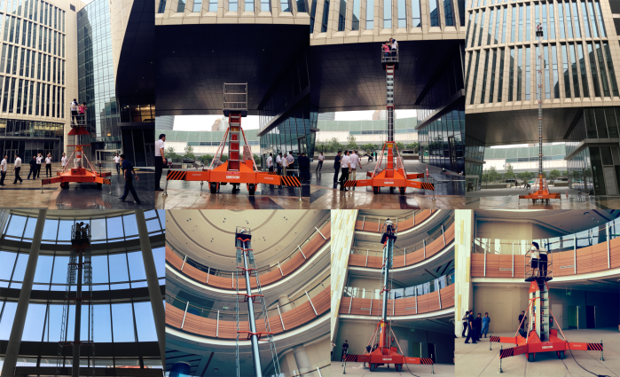 上海百聯(lián)世紀購物中心有限公司訂購Veedon高空作業(yè)平臺設備VAWP22120主要用于商場高空作業(yè),維修檢修等商場的日常維護工作。