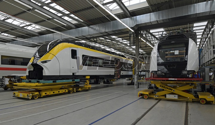 威登剪叉式車底拆裝升降平臺專業(yè)用于軌道車輛制造裝配修時車底設(shè)備和部件拆卸安裝的專用設(shè)備,完全滿足裝配和檢修人員對軌道車輛底部設(shè)備的維修拆卸與安裝。該產(chǎn)品額定承載量大,裝置主要結(jié)構(gòu)為電動液壓驅(qū)動的升降支架及平臺,具有無級調(diào)速舉升和自行走功能,行走輪為液壓四輪驅(qū)動90°同步角度控制,車底設(shè)備拆裝裝置作業(yè)時可橫向、縱向連續(xù)移動。設(shè)備的平臺可橫向、縱向平移和順時針、逆時針方向旋轉(zhuǎn)浮動。電源可選擇交流、直流。輪系可公鐵兩用。電源:蓄電池供電,DC48V,充電電源要求:AC380V/50Hz,環(huán)境溫度:-5~+45°C,相對濕度:≤95%,海拔高度:≤1200m,前后左右萬向行駛,可選遙控或者線控,快速慢速可切換,平臺上升下降,平臺可旋轉(zhuǎn),可浮動微調(diào),可選裝平臺護(hù)欄,可選顏色,該產(chǎn)品可根據(jù)實際需求訂做任何高度