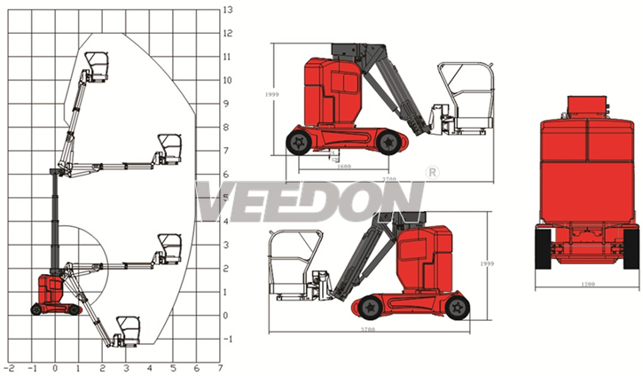 伸縮臂前端配置有擺動油缸,使平臺轉(zhuǎn)動范圍達到±45°,明顯加大用戶的作業(yè)范圍。