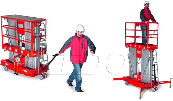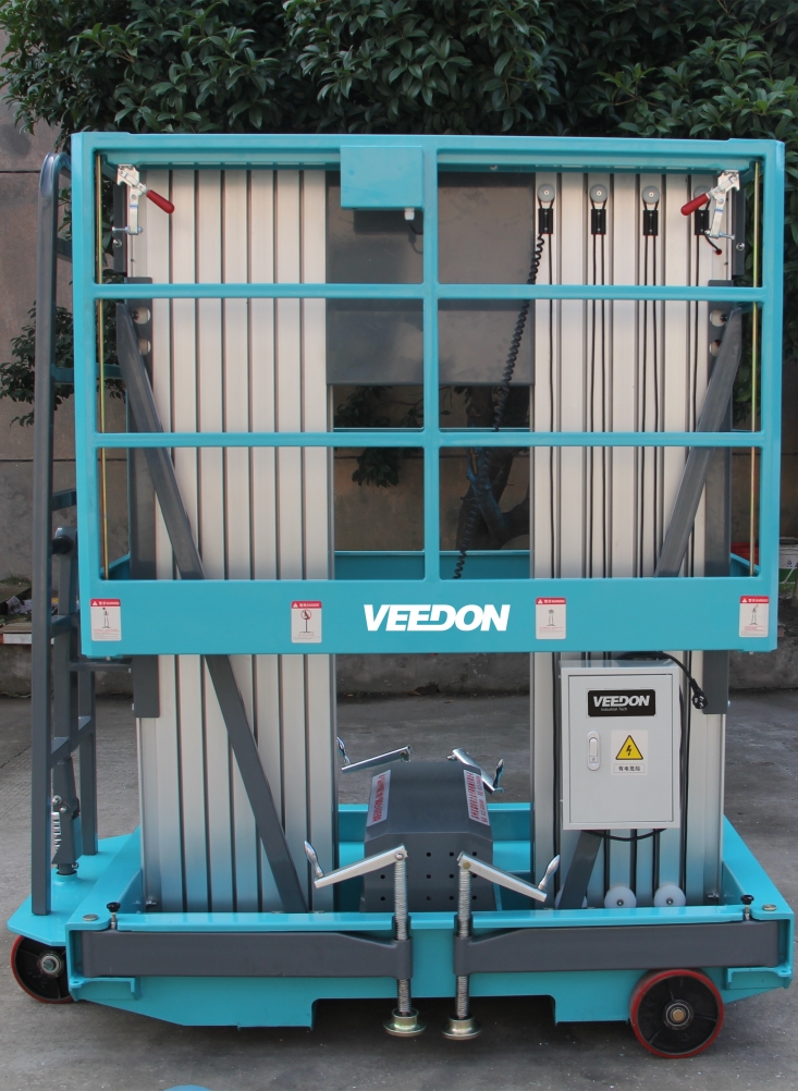 Veedon桅桿式高空作業(yè)升降平臺(tái)采用鋁合金材質(zhì)機(jī)身,整機(jī)輕巧,方便移動(dòng)、運(yùn)輸,工作平臺(tái)上下方均安裝操作按鈕及應(yīng)急停止按鈕,輕盈的結(jié)構(gòu),精致的機(jī)身,多適用禮堂、會(huì)場、議事廳等中高端場所,雙桅伸縮柱結(jié)構(gòu),該型高空作業(yè)平臺(tái)作業(yè)面積大載荷可達(dá)200KG,雙桅柱高空作業(yè)平臺(tái)車長尺寸小,可通過普通載客電梯,為了方便運(yùn)輸與進(jìn)出大門,工作圍欄可自動(dòng)升降達(dá)到最低高度,Veedon威登雙桅桿柱型高空作業(yè)平臺(tái),是一款經(jīng)濟(jì)型大平臺(tái)可雙人操作的高空作業(yè)平臺(tái),高強(qiáng)度高品質(zhì)鋼制底座,即使是惡劣的工作環(huán)境,也一樣可安全使用,寬大的作業(yè)平臺(tái),讓您更便捷地?cái)y帶工具和更大的活動(dòng)空間,雙控制系統(tǒng),不管是地面、還是工作平臺(tái)籃,您都可以輕松操作,只有威登可以為您提供如此人性化設(shè)計(jì)的高空作業(yè)平臺(tái)。