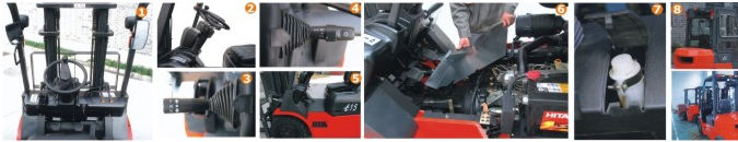 叉車的車燈和轉(zhuǎn)向桿的設(shè)計(jì)借鑒了汽車上同類產(chǎn)品的設(shè)計(jì),使操作效率和舒適性大幅度提高。