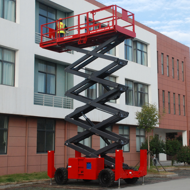 RT系列自走式崎嶇地形剪刀式升降機(jī)是一種空中作業(yè)平臺(tái),最大能力為1000公斤,剪刀式升降機(jī)的特點(diǎn)配有應(yīng)急裝置,可以在沒有電力的情況下降至地面。這種自走式崎嶇地形剪刀式升降機(jī)還可以通過緊急牽引來移動(dòng),以確保操作人員的安全。