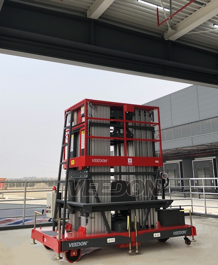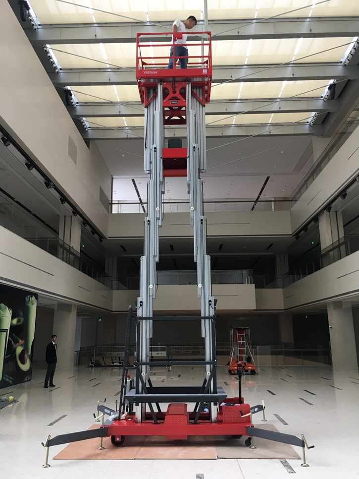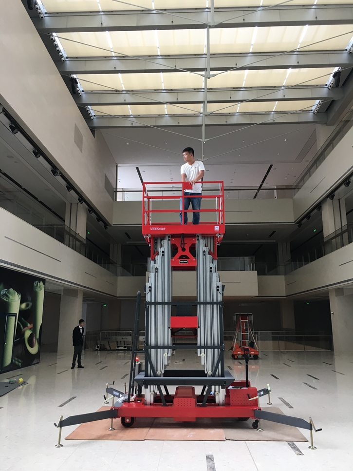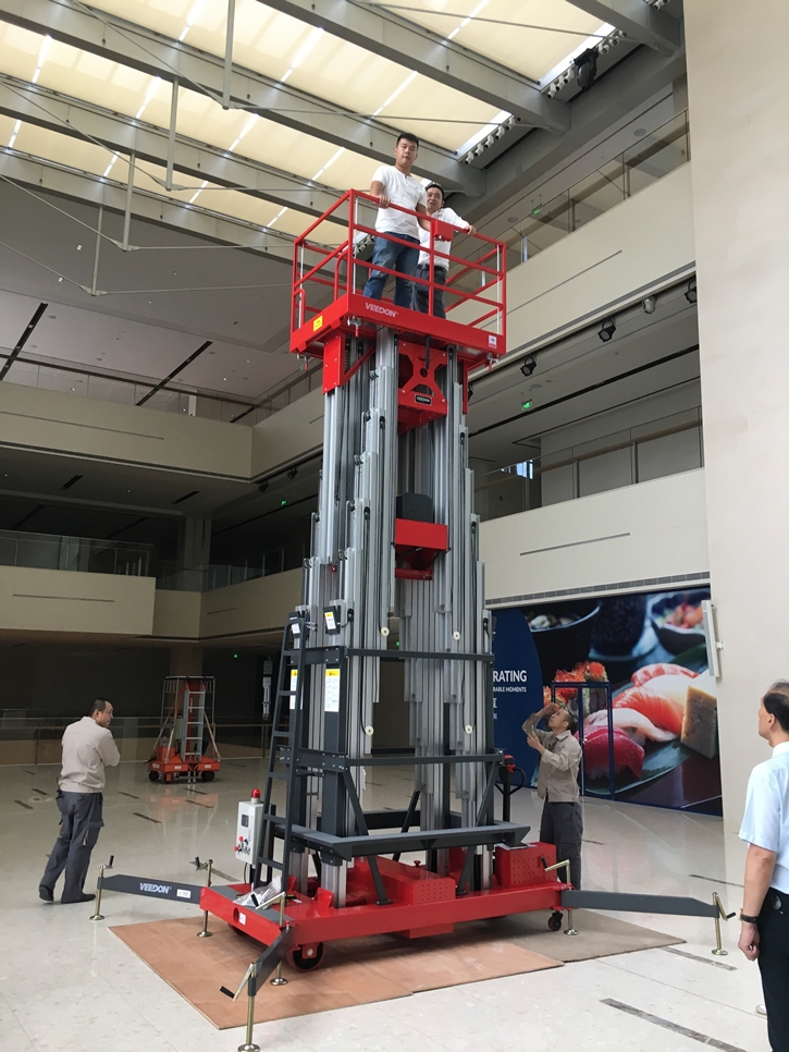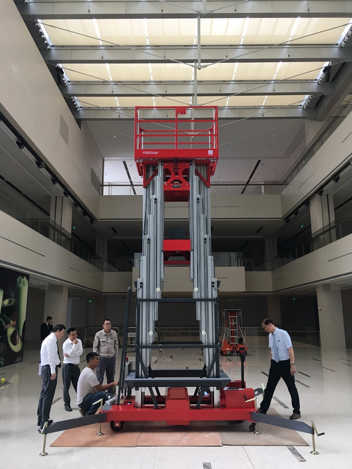 Veedon桅桿式高空作業(yè)升降平臺采用鋁合金材質(zhì)機身,整機輕巧,方便移動、運輸,工作平臺上下方均安裝操作按鈕及應(yīng)急停止按鈕,輕盈的結(jié)構(gòu),精致的機身,適用于酒店、商場、禮堂、會場、議事廳、工業(yè)工廠等中高端場所,多桅柱分為三桅、四桅和六桅,分別因其而設(shè)計,為了滿足客戶對設(shè)備高度和作業(yè)穩(wěn)定性的要求而設(shè)計,輕盈的外觀設(shè)計能在極小的空間范圍內(nèi)發(fā)揮最高的舉升能力