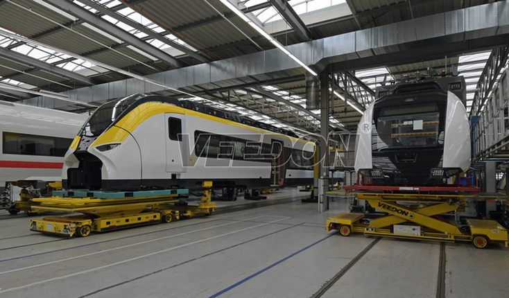 威登剪叉式車(chē)底拆裝升降平臺(tái)專業(yè)用于軌道車(chē)輛制造裝配修時(shí)車(chē)底設(shè)備和部件拆卸安裝的專用設(shè)備,完全滿足裝配和檢修人員對(duì)軌道車(chē)輛底部設(shè)備的維修拆卸與安裝。該產(chǎn)品額定承載量大,裝置主要結(jié)構(gòu)為電動(dòng)液壓驅(qū)動(dòng)的升降支架及平臺(tái),具有無(wú)級(jí)調(diào)速舉升和自行走功能,行走輪為液壓四輪驅(qū)動(dòng)90°同步角度控制,車(chē)底設(shè)備拆裝裝置作業(yè)時(shí)可橫向、縱向連續(xù)移動(dòng)。設(shè)備的平臺(tái)可橫向、縱向平移和順時(shí)針、逆時(shí)針?lè)较蛐D(zhuǎn)浮動(dòng)。電源可選擇交流、直流。輪系可公鐵兩用。
